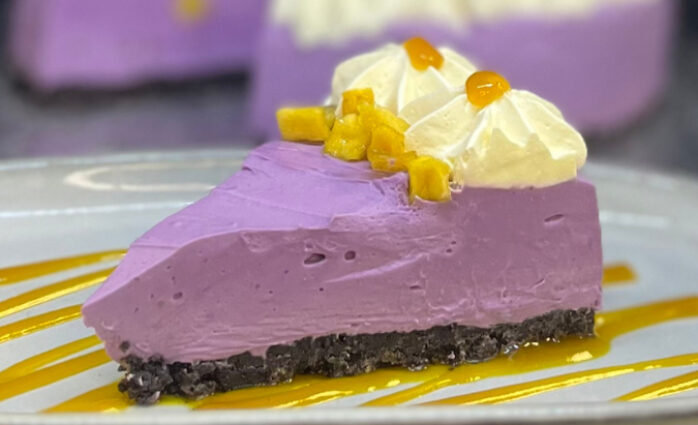 Ube, Mango and Passionfruit Vegan Cheesecake