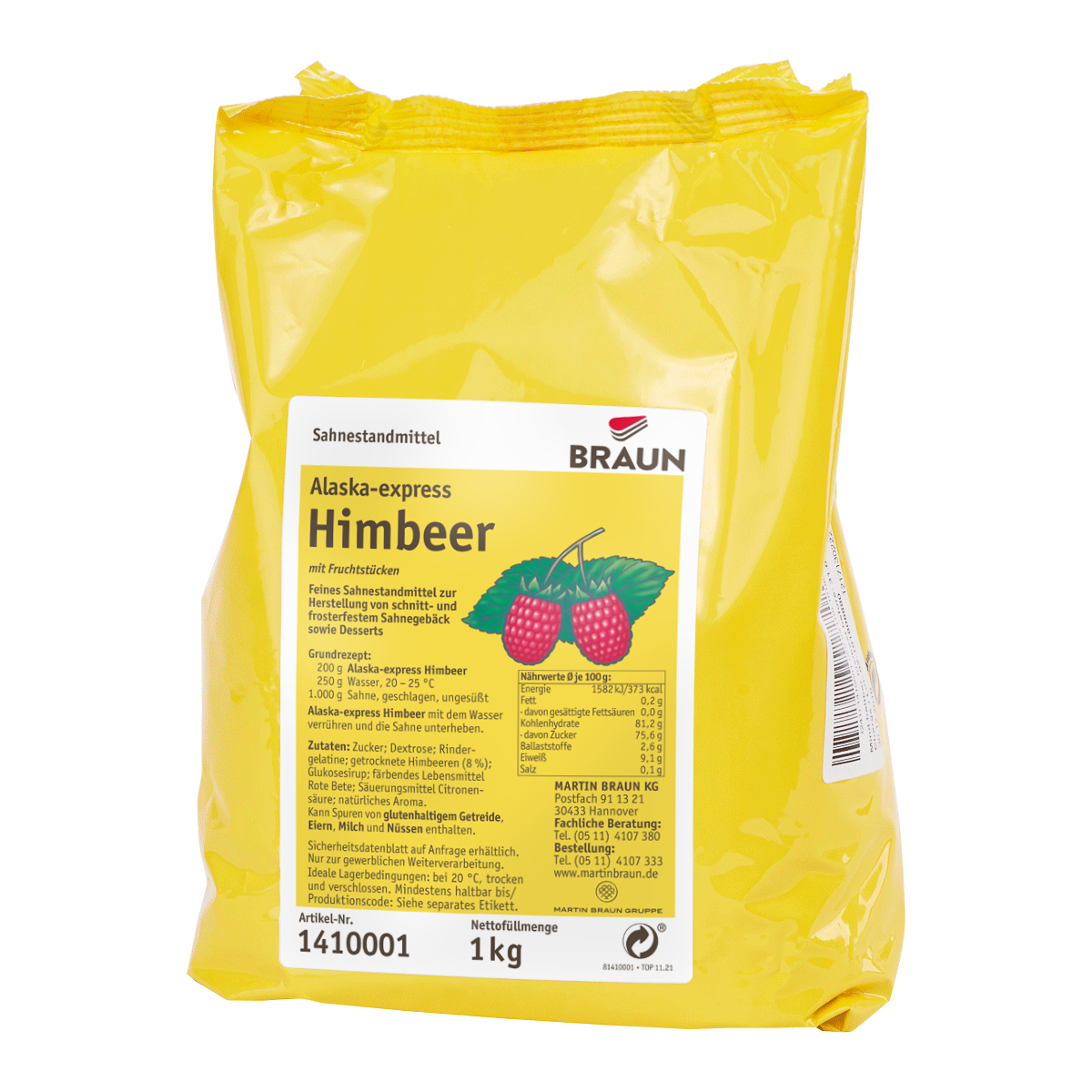 Powdered fresh cream stabilizer with freeze-dried raspberry fruit pieces.
