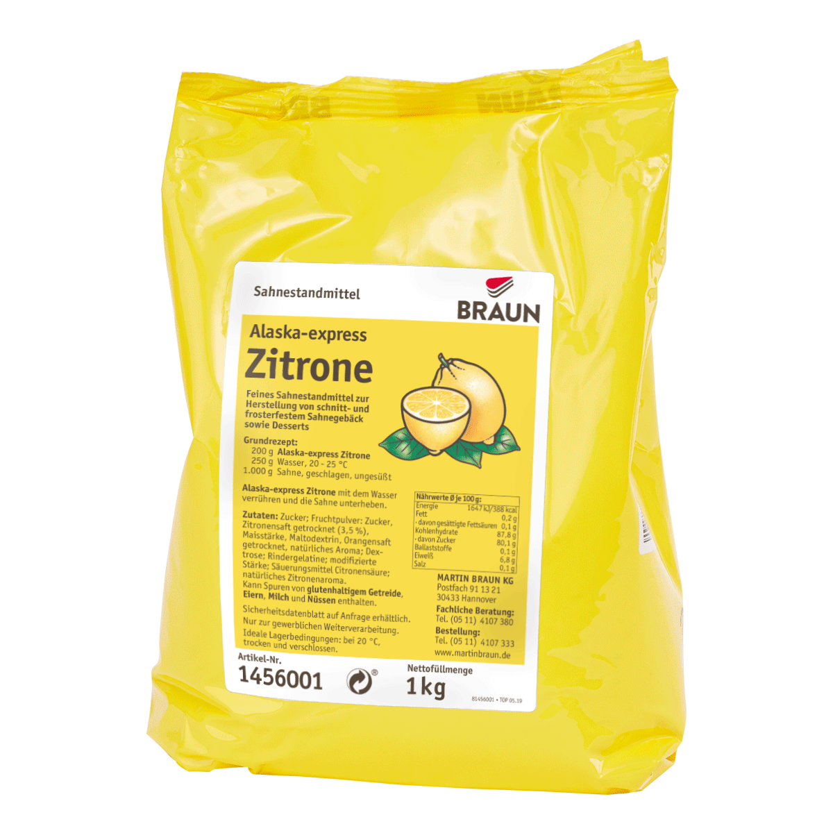 Powdered fresh cream stabilizer with freeze-dried lemon pieces.