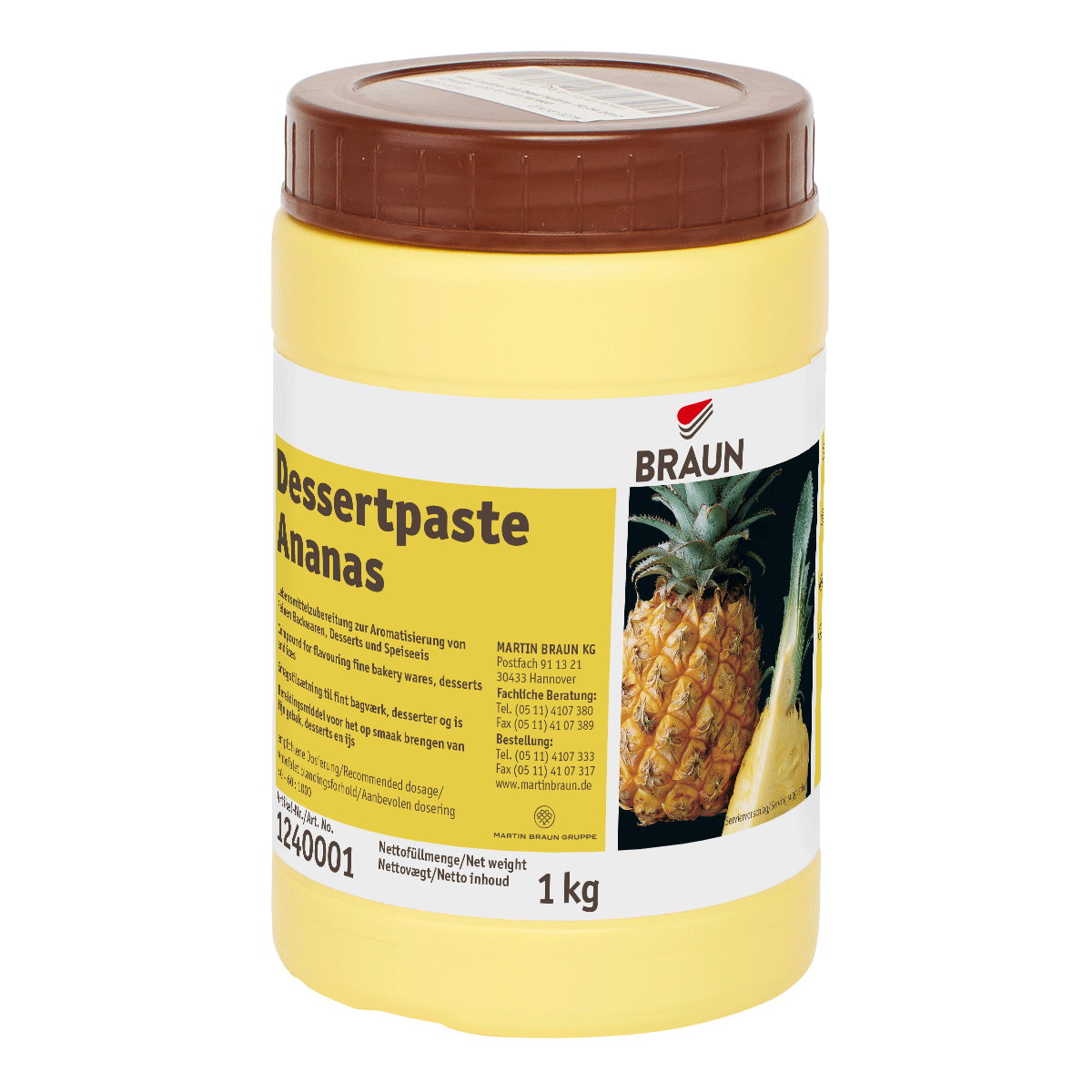 Flavour in paste form made from special fruit pulp. 31% pineapple.