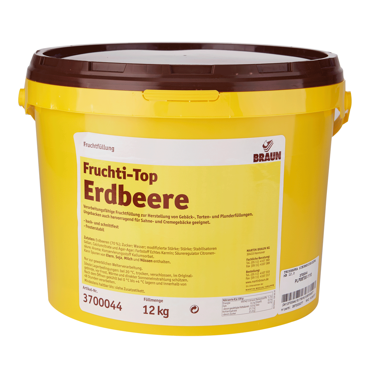 Ready to use fruit filling with a fruit content of 70% and natural strawberry flavour. Good for piping.