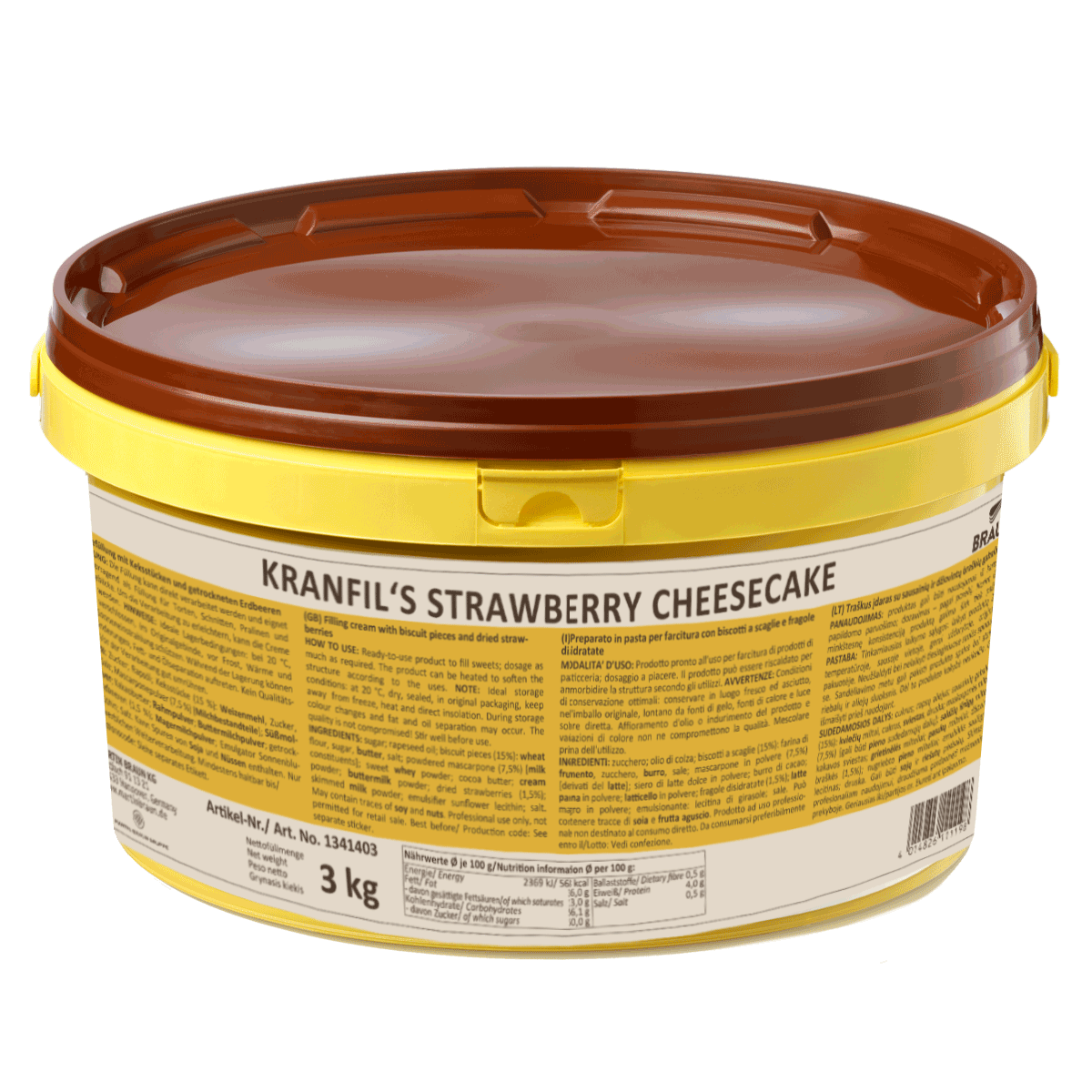 Filling cream with biscuit pieces and dried strawberries.