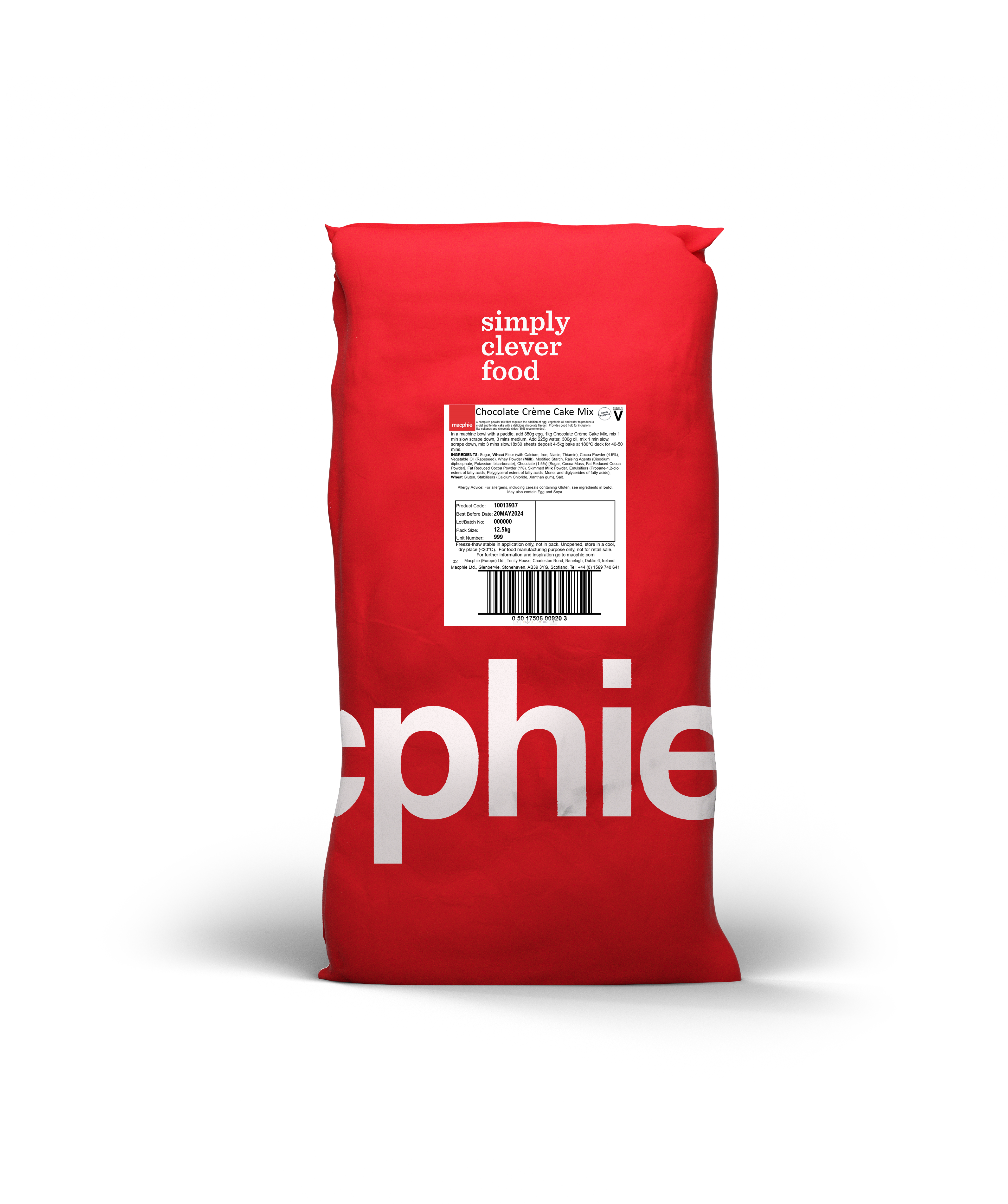 A complete powder mix that requires the addition of egg, oil and water to produce a moist and tender cake with a delicious chocolate flavour