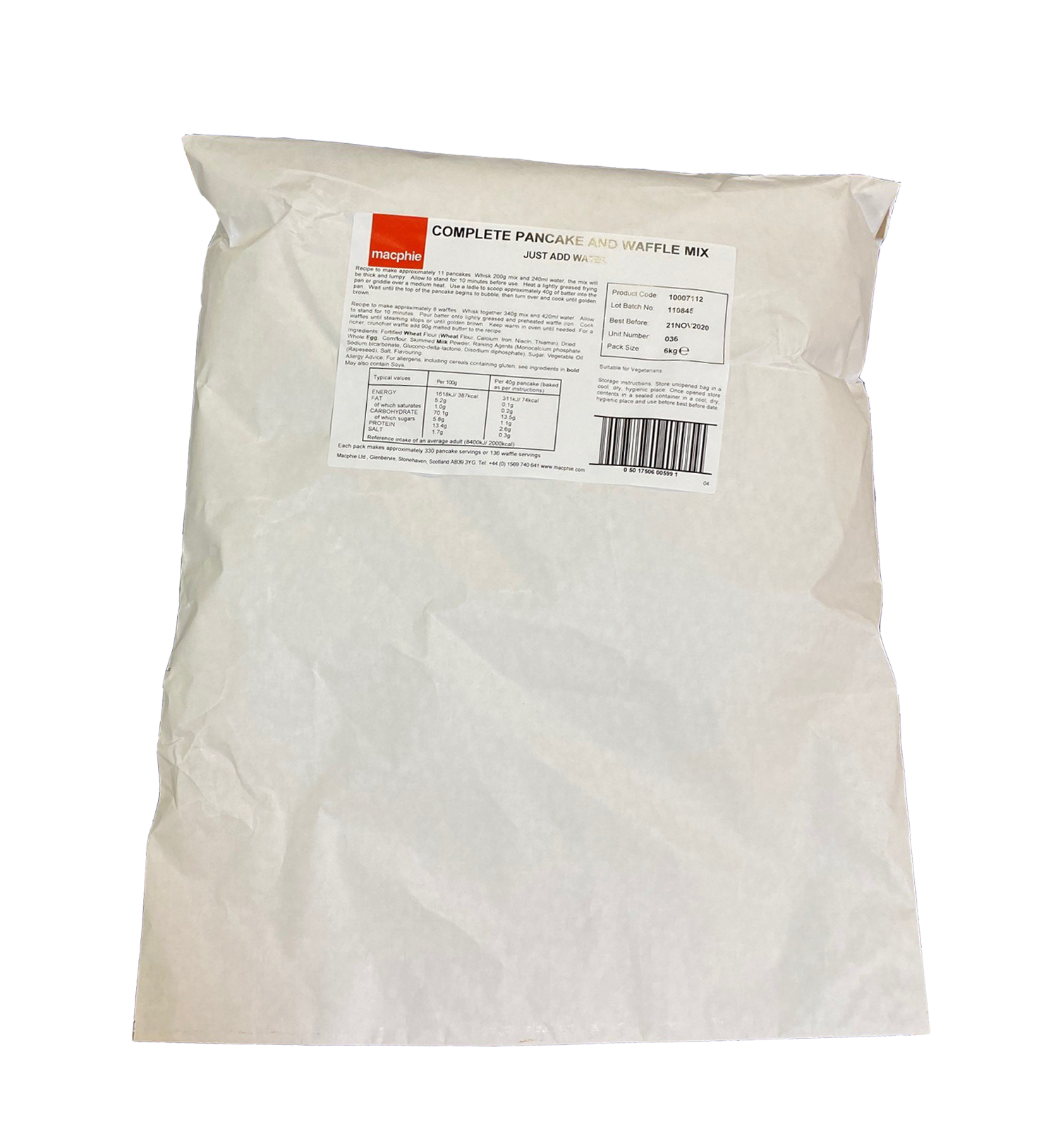 Complete Pancake and Waffle Mix is a powder mix requiring the addition of water used for the production of light and fluffy pancakes or waffles.
