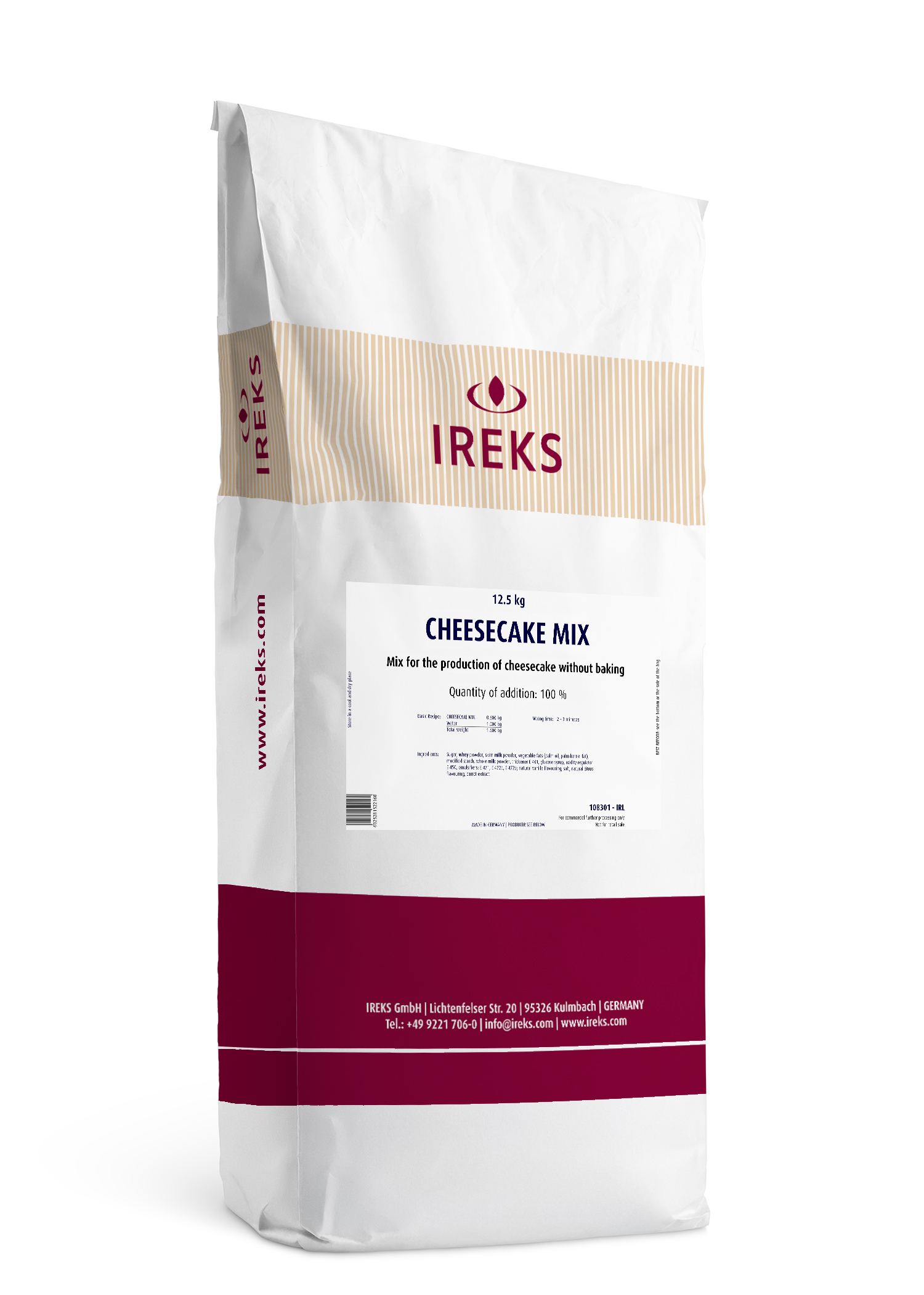 A powder mix for the production of cheesecakes without baking. Only the addition of water is required. Whipping cream can be added for even creamier taste. Processing advantages -simple and reliable processing -can be mixed with fruit and flavourings -cooling and freezing stable Quality advantages -very good stability, even at warm temperatures -pleasant cream taste -smooth, clean cutting edges