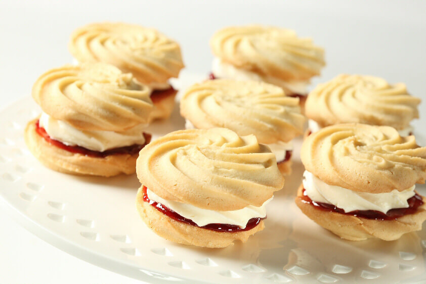 For tray bakes, deposit approximately 4.5kg for an 18”x30” sheet. Bake at 180°C (360°F) for 40 minutes.